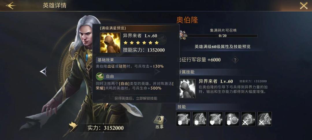 作为后期弓箭队的核心英雄,奥伯隆的【异界来者】一看似乎挺鸡肋,但其实不然,根据当前实力兵损情况,组成一支80%,甚至100%都是弓箭手的黑科技,针对骑兵队伍时简直不要太轻松。