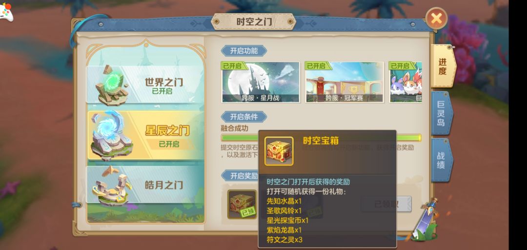 巨灵岛是当玩家到达70级以后,并且服务器开启了【星辰之门】,即可开启。