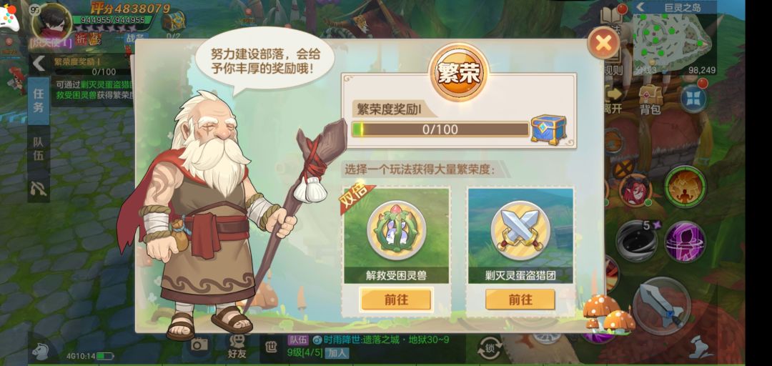①解救受困灵兽:基础繁荣度为30/只,参与攻击即可获得繁荣度。(小号挂机组队刷繁荣度时效率最高)