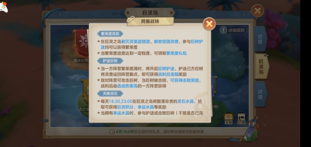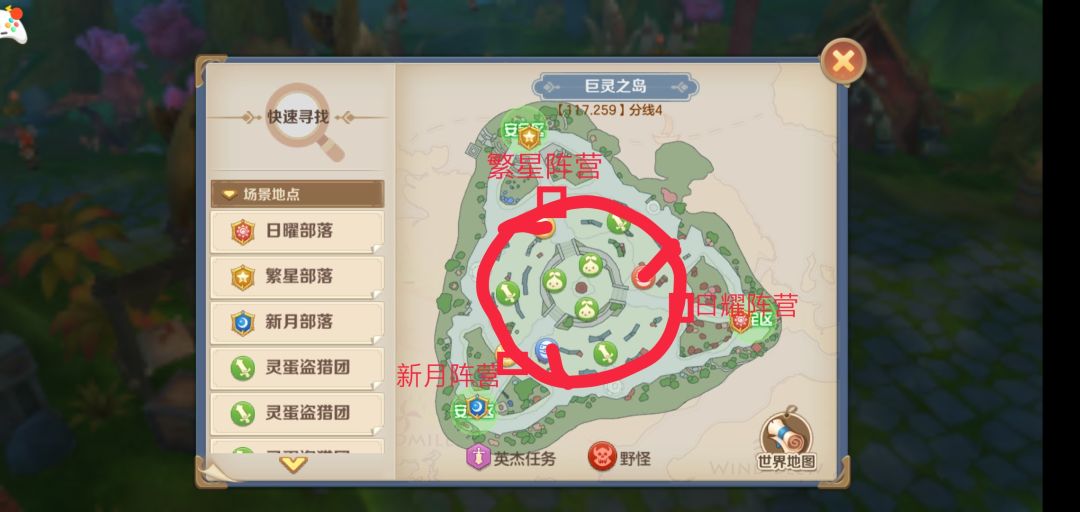 ③巨灵岛阵营群体PK时,建议组好队伍,通过取消跟随状态-离开巨灵岛-再点跟随队长,可以直接恢复角色满血(但是因版本改动,宠物状态不会改变)。持续进行群体对战或者是击败巨树。(