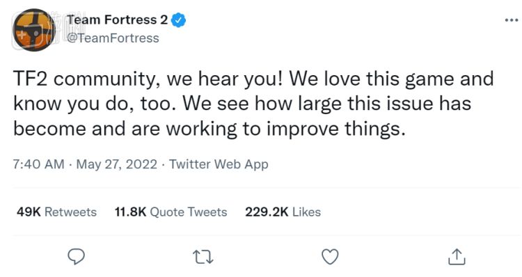 引起了全球互联网的瞩目后,多年未活跃过的TF2官推很快发文表态,声称已经注意到了社区的反馈,会进行改进。