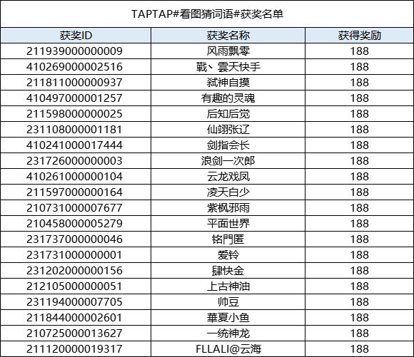 恭喜以下主公本次活动奖励,奖励会在7个工作日内发布到对应ID邮箱内,请注意查收