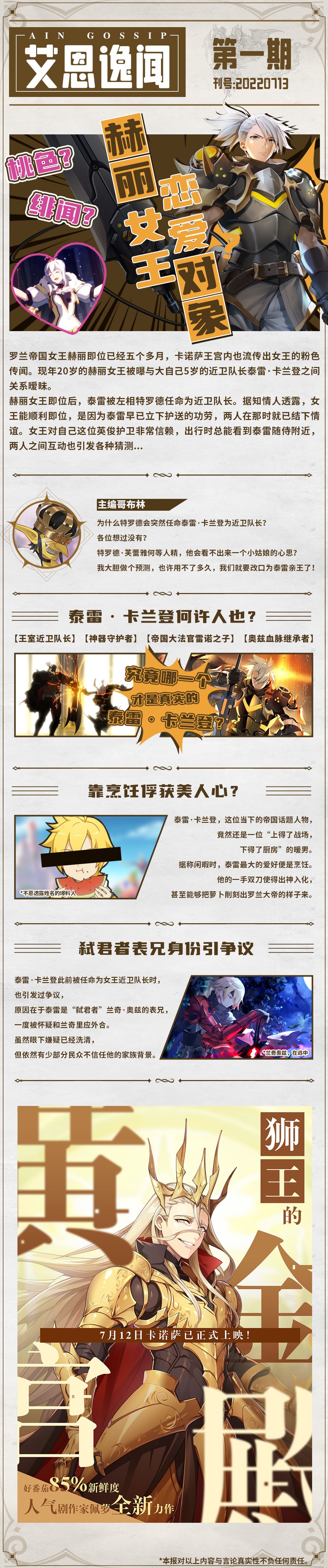 夏日炎炎,艾恩大陆也出现了爆炸新闻哟!女王的桃色绯闻?!吃瓜还不快快锁定『艾恩逸闻』 第一期——