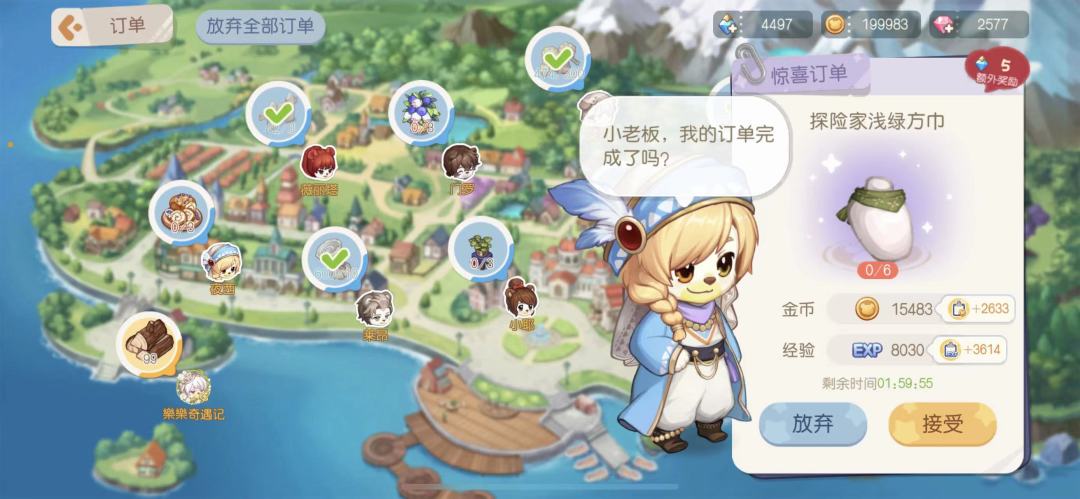 所以如果要把订单经验拉满,只要你在提交订单前调整好相关的旅行者就可以得到增益效果
