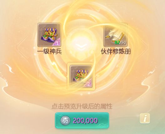装备升级装备升级与伙伴等级有关,升级装备将消耗师贡与伙伴修炼册;装备升级后其属性词条类型不变,但词条值的上限会变高;