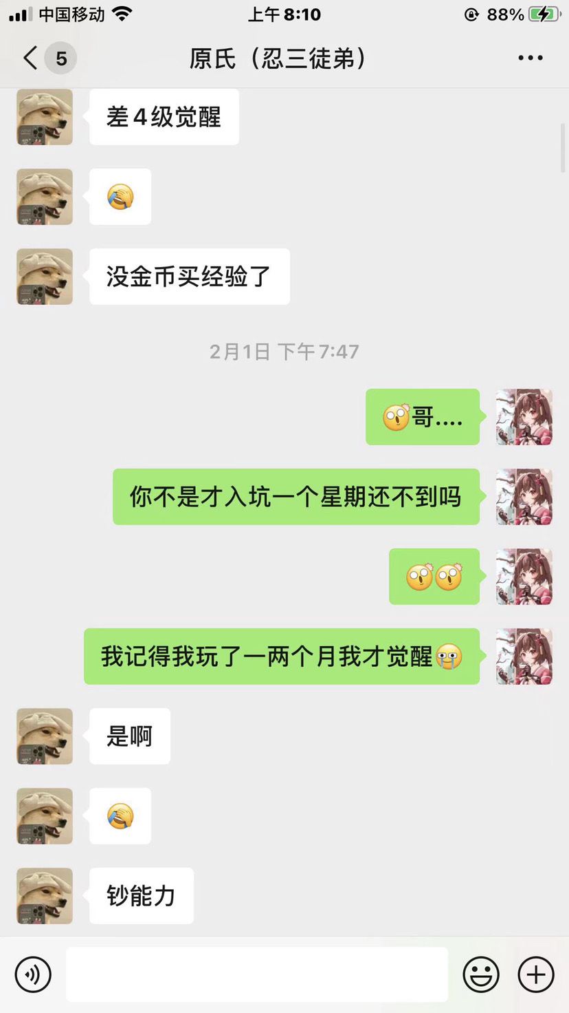 入坑第一天氪金买忍币到觉醒....全满命.....并且现在影忍1却已经铭3....
