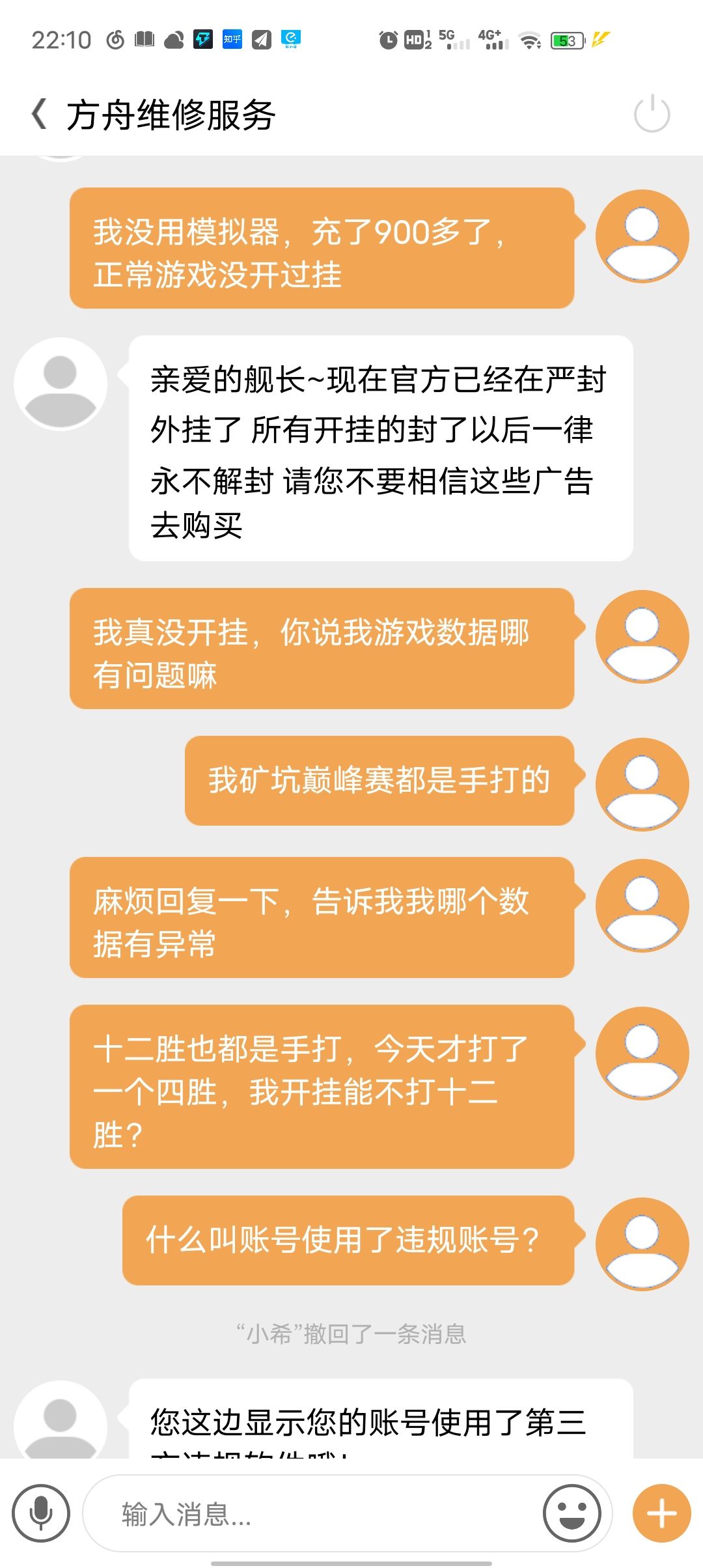 和客服对线,问他异常数据截图通通没有,反正翻来覆去就一句你开了,好霸气,好霸道.最后直接玩消失,牛,楼下发帖子开挂跳脸都不封,随机抓一批幸运观众封号