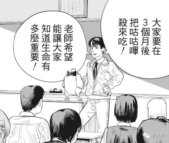 在第1话里出现了此起彼伏目不暇接的奇怪设定,网友们能够感受到这些设定的原型,比如无头鸡可能是出自《人类衰退之后》,女主复活后的疤痕有点像《黄金神威》同人本里性转的杉元佐一,爆炸的场景是在致敬自己《再见绘梨》的奇幻色彩等等,这些捏他并不会对理解故事本身产生障碍,漫画的分镜一如既往地清爽有力,观感相当过瘾。推荐大屏观看,不建议手机看。