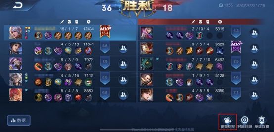 在结算数据页面,我们增加了“视频战报”按钮,召唤师们可以点击该按钮发起生成该局视频战报的指令。