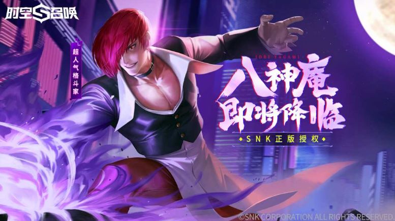 SNK正版授权 超人气格斗家---八神庵,即将降临天空竞技场!葵花、暗拂、鬼烧、屑风、八稚女等招式经典再现,技能效果即将曝光(本周三爆料不要走开哦),各位小伙伴们敬请期待。