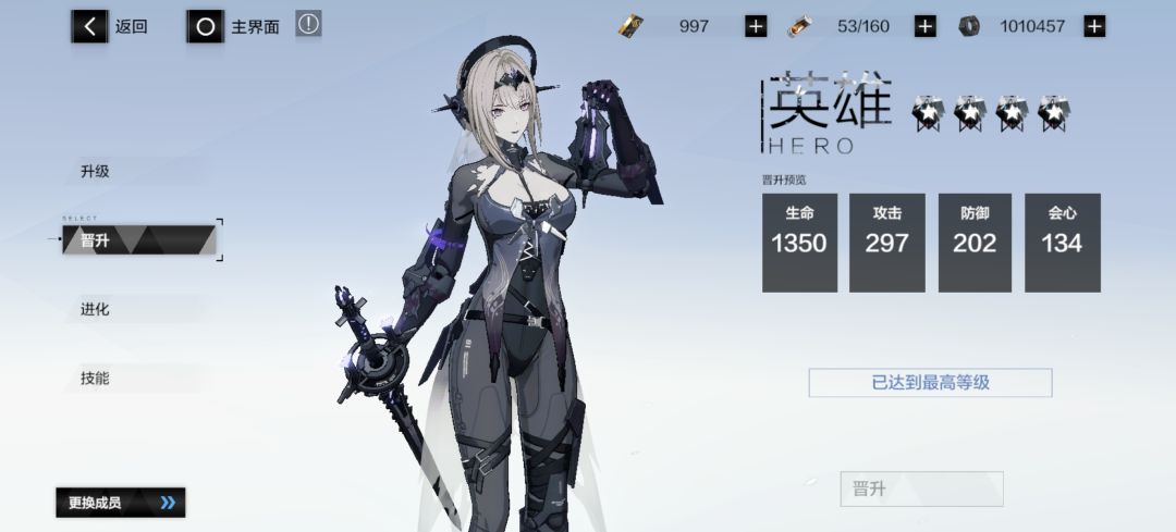 角色的等级升级啊,技能升级什么,没有什么讲的必要,大家都会,我就先说一下晋升的功能,角色的晋升可以增加属性,条件就是等级达到标准(每五级一次)和主线剧情推到某一点,满足了条件花费螺母就可以晋升,最高到80级。