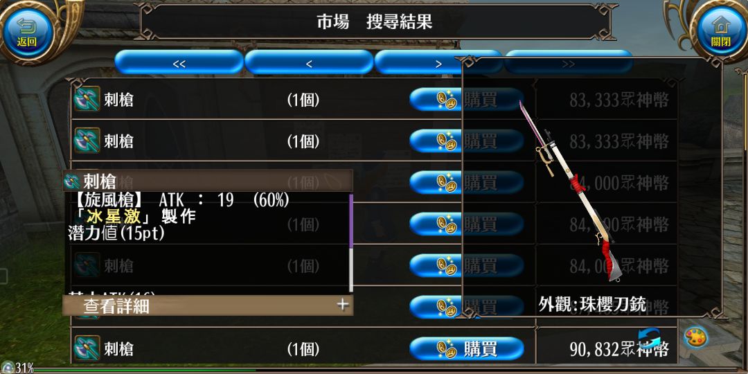 不得不说珠樱的外观都很好看啊,尤其是拔刀!!比较有特点的还有旋风枪和弩。