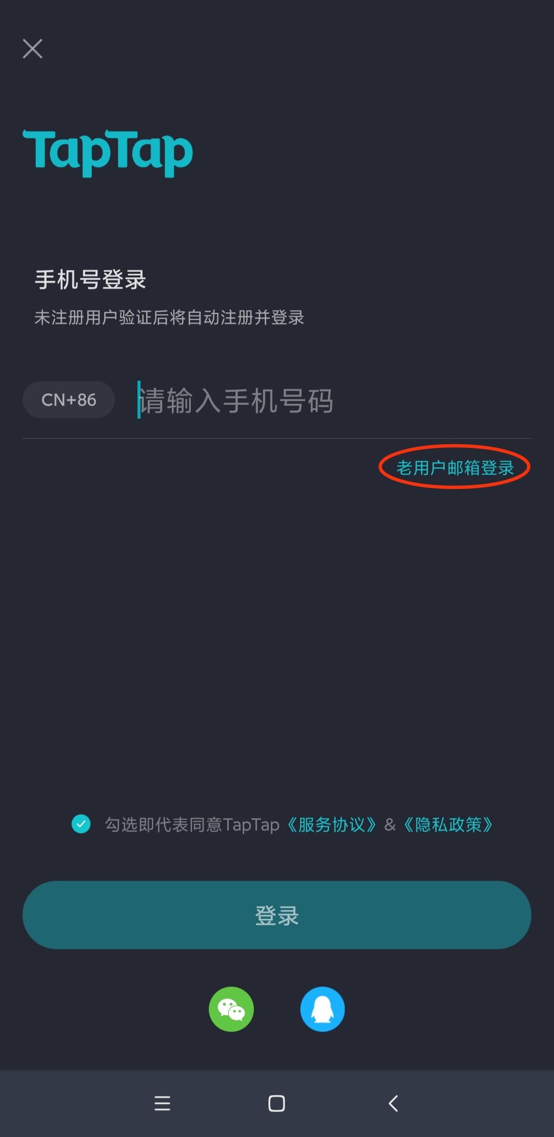 我们都知道,在TapTap登录时会有很多种登录方式,其中,有一个老用户邮箱登录,如下图