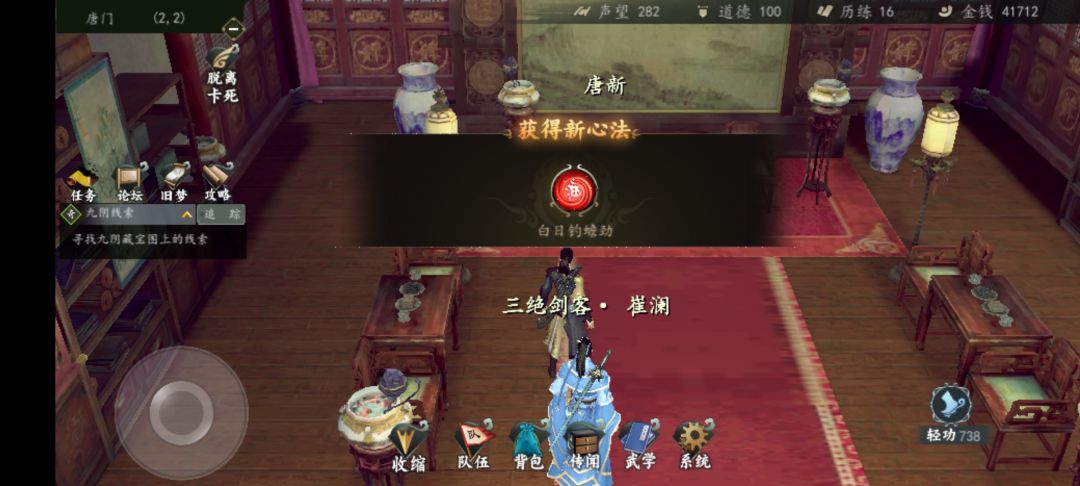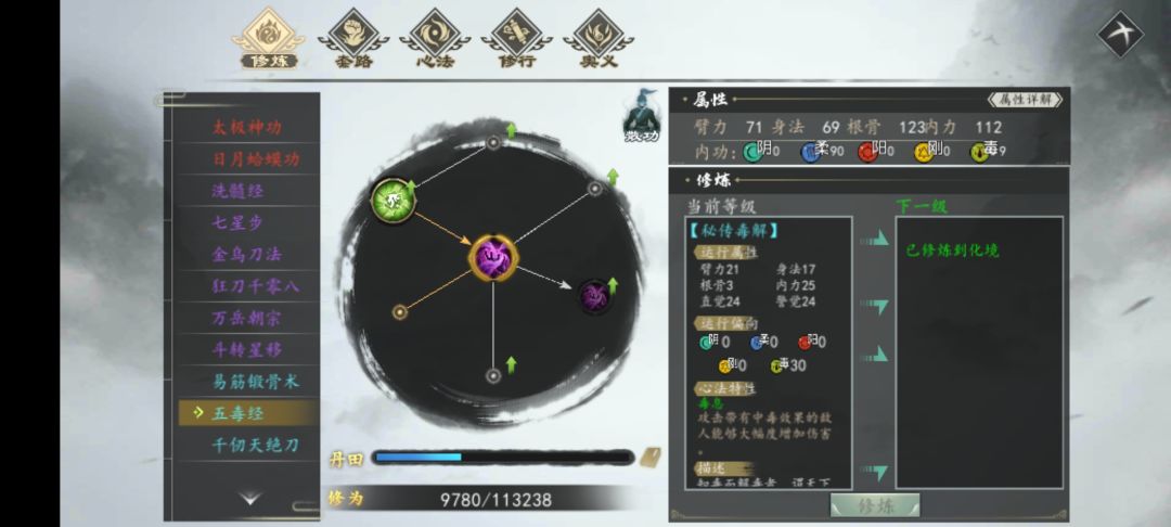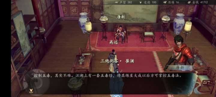 发现一个小技巧,做完唐门支线以后,唐新对话栏里会出现一个控制五毒的对话框,点满五毒经里的秘传毒解,学了日月蛤蟆功可以直接找唐新解锁白日钓蟾劲而不用花修为先点开明月玉蟾功。