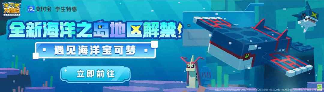 除了惊喜刺激的抽奖,《宝可梦大探险》携手支付宝推出的特别学生价活动也不容错过!如果你有学生证,嘿嘿~打开支付宝搜索【学生特惠】,找到《宝可梦大探险》品牌权益,就可以领取海洋之岛食材限定礼包啦~海洋之岛限定食材泡泡晶珠,助力探险家们遇见更多海洋宝可梦!