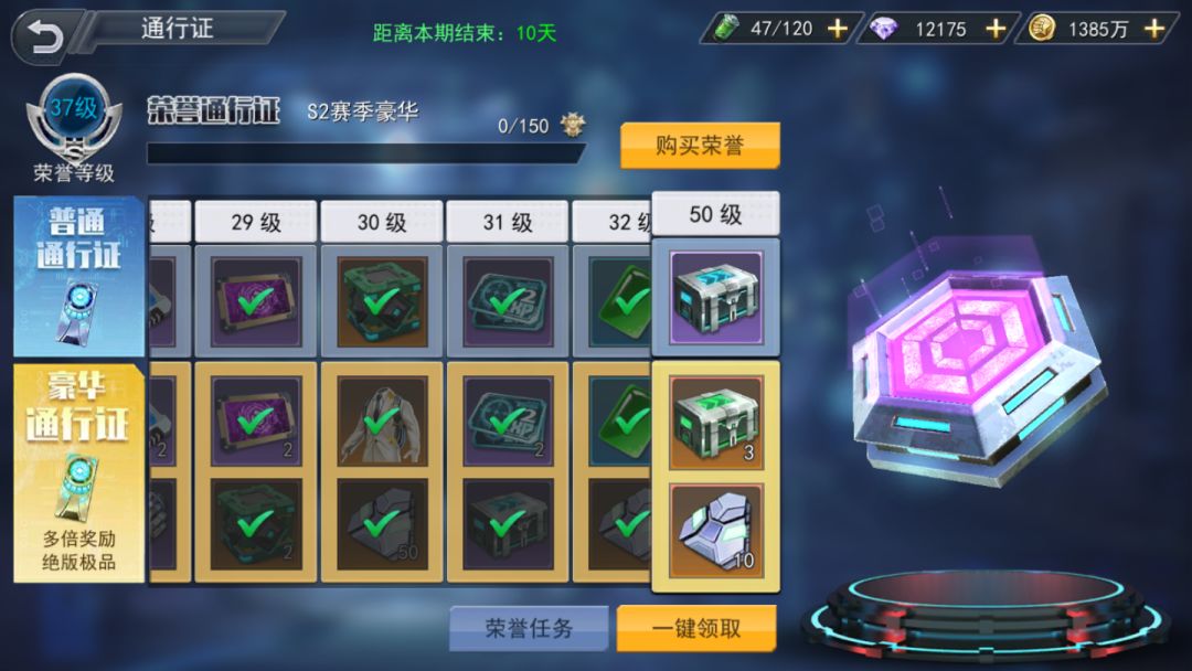 通行证包括普通通行证和豪华通行证,完成荣誉任务,可以获得相应的物品奖励,奖励内容十分丰富,包括日常耗材,宝石,符文等,更有稀有载具,限定时装等。