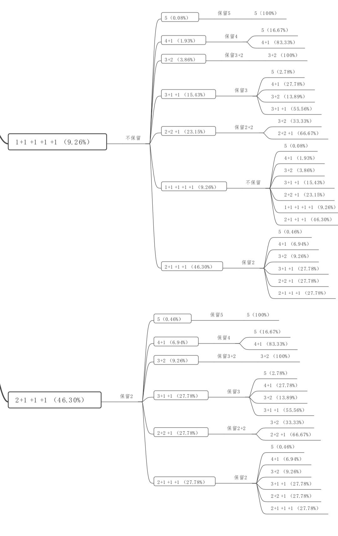 (由于全留相对于保留2+2必然是劣势策略,因此虽然不能直接看出全留和保留2以及不保留的优劣,我们也不用考虑全留的情况)