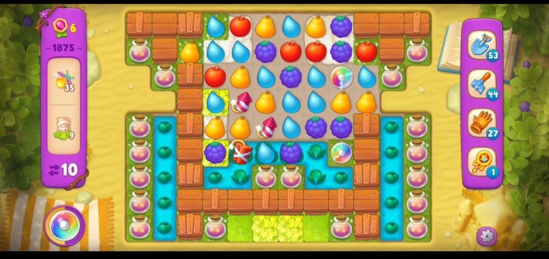 ⑥元素交换匹配,制造雷管炸弹可以省更多的步数,或者尽量制造双彩虹,直接就可以一步到位,现在就把剩下的小矮人和萤火虫收集掉就可以了。