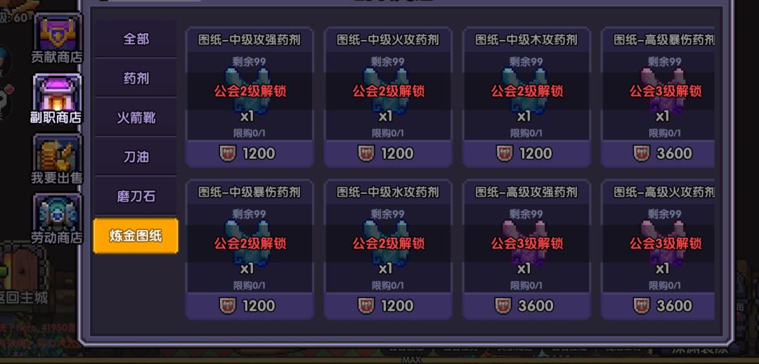 此外,商店也受公会等级的限制,4级以下的公会将受到购买限制
