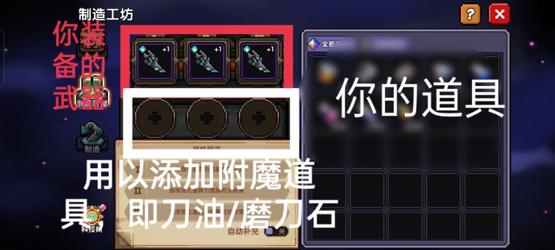 (二)刀油和磨刀石可以用于武器附魔功能,可以增加一些属性,但效果有时间限制。