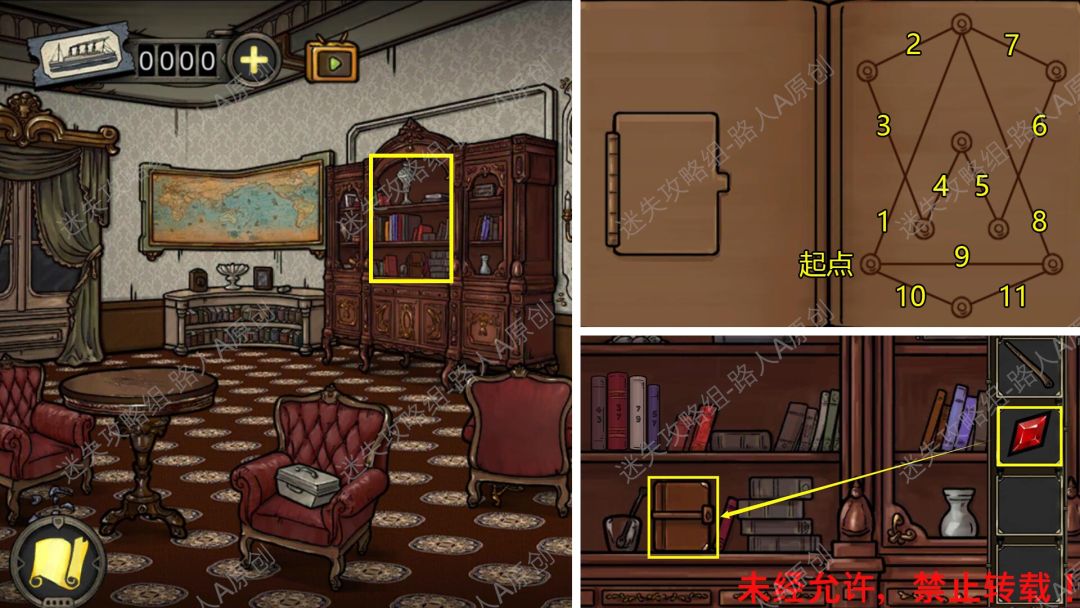 14.将【红宝石】放入书本凹槽,翻开书本,完成一笔画谜题,得到【钥匙】。14.1