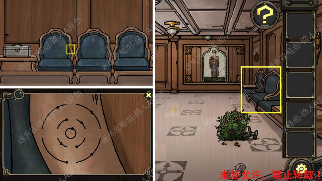 6.前往电梯间,查看椅子扶手,得到线索。6.1