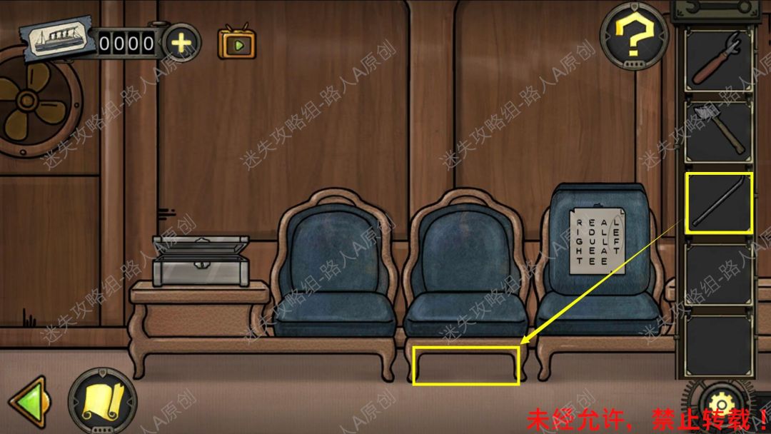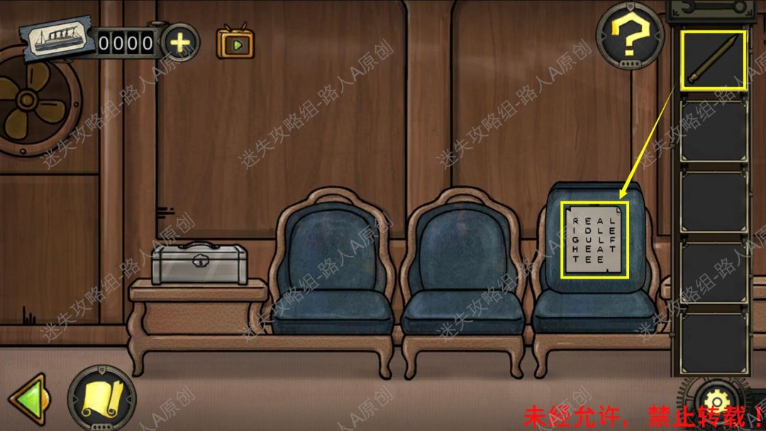 8.返回电梯间,掀起椅子的座垫,对字母纸条使用【铅笔】,得到密码【LEFT】。8.1