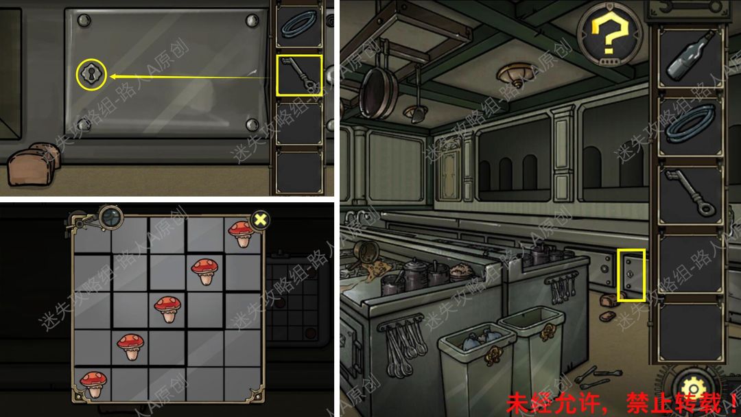 11.前往厨房,拾取【罐头刀】、【伏特加】、【半块钥匙】、【火钳】、【纸条】。11.1