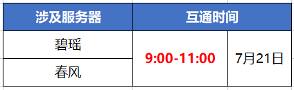 【官方公告】7月21日数据互通公告