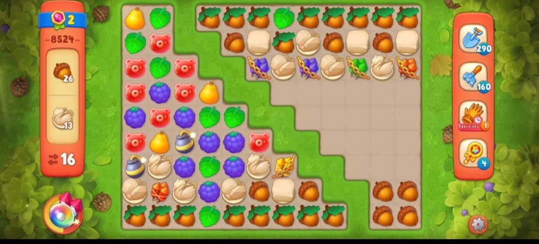 ⑦接下来就可以匹配火箭或者元素交换制造雷管炸弹来搜集剩下的橡实和天鹅雕像,这一关就可以成功的通关啦。