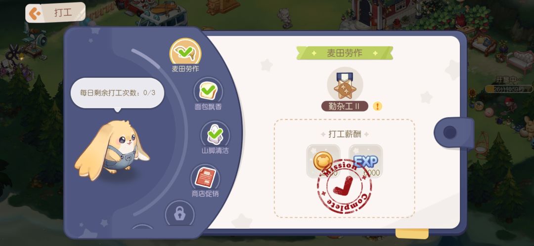 ②打工(每天可以打3次工,每天获得经验3ⅹ6000)