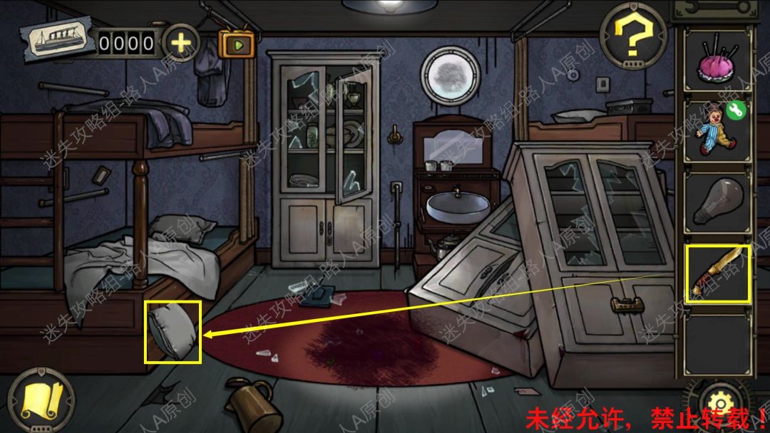 57.前往船员室,用【匕首】割开枕头,得到【人偶手臂】。57.1