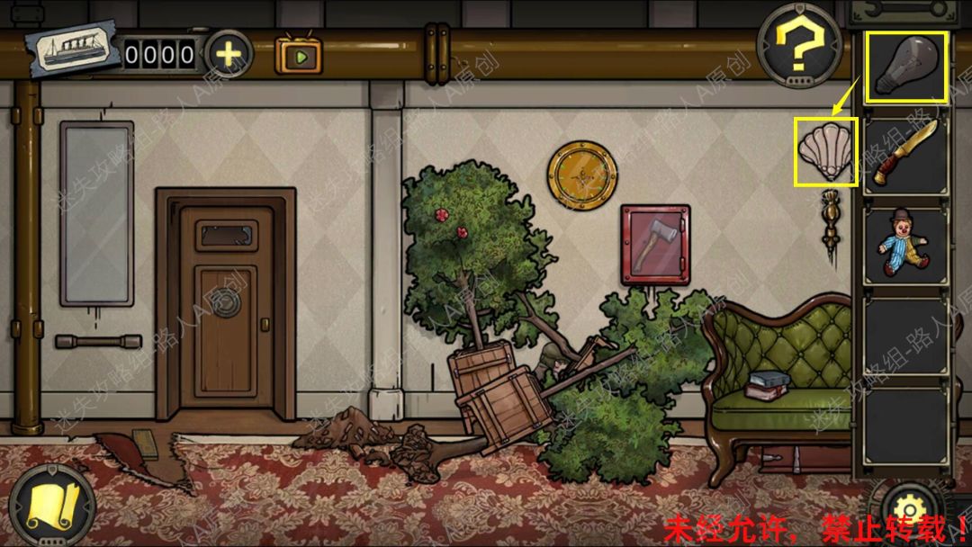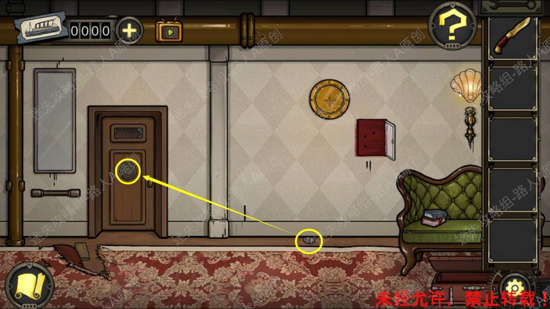 59.返回三等舱,替换贝壳壁灯的灯泡,得到【钥匙】。59.1