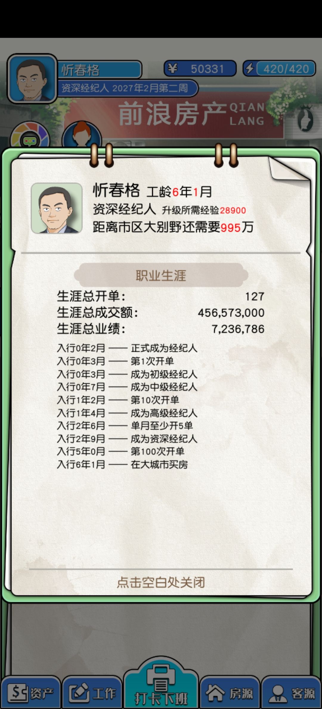 ③根据自己的钱的多少,在游戏的前期把经纪人必备的所有东西都买到手,44w的那个可以等自己富了再买。