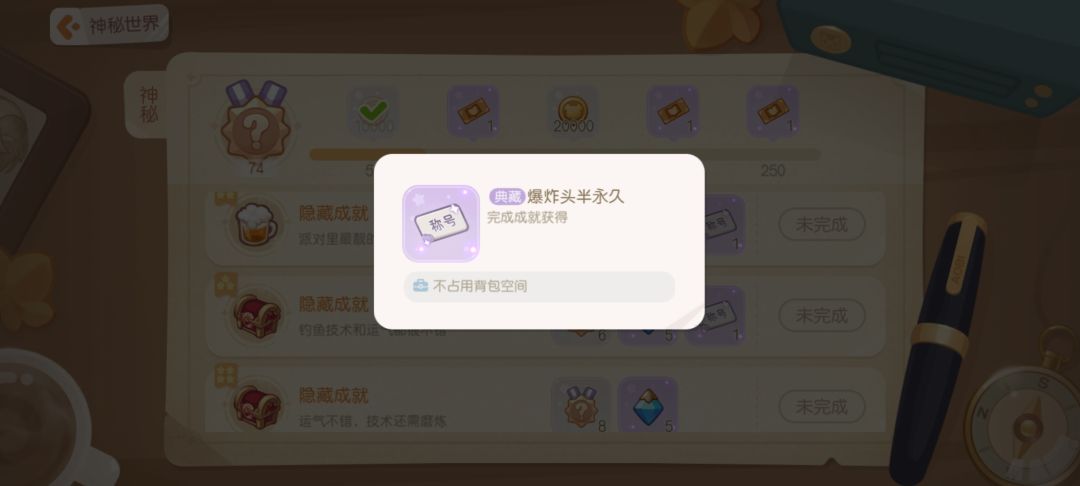 钓鱼的一个是钓空一百次,另一个是钓到鱼王十次(称号:比鱼王还凶)