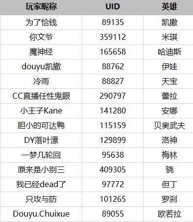 我们通过计算每个参与玩家所选择英雄的胜场,最终统计出每个英雄胜利场数最多的选手即为获奖玩家,具体英雄帖获奖名单如下: