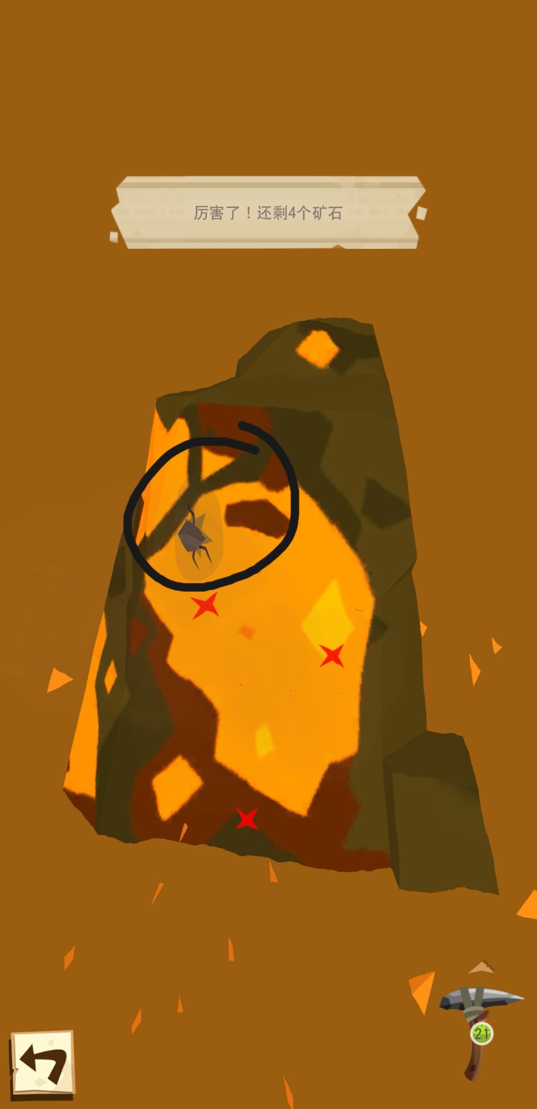 那就退出挖矿,左下点返回,然后继续点这个矿。再挖一次裂缝
