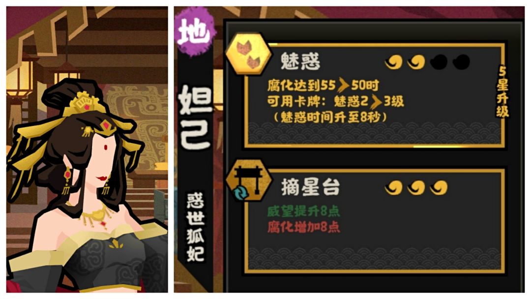 (配图中周公旦未满星,但满星后提供的威望与腐化和妲己一致)
