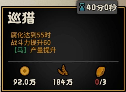 不要觉得提升2%的产出很少,这个效果实际相当于把各个提升特殊资源产量的科技都点了一次,这至少可以在前期获得一个马,至于另一个马,不论是从流寇处获取,还是战争掠夺获取都行