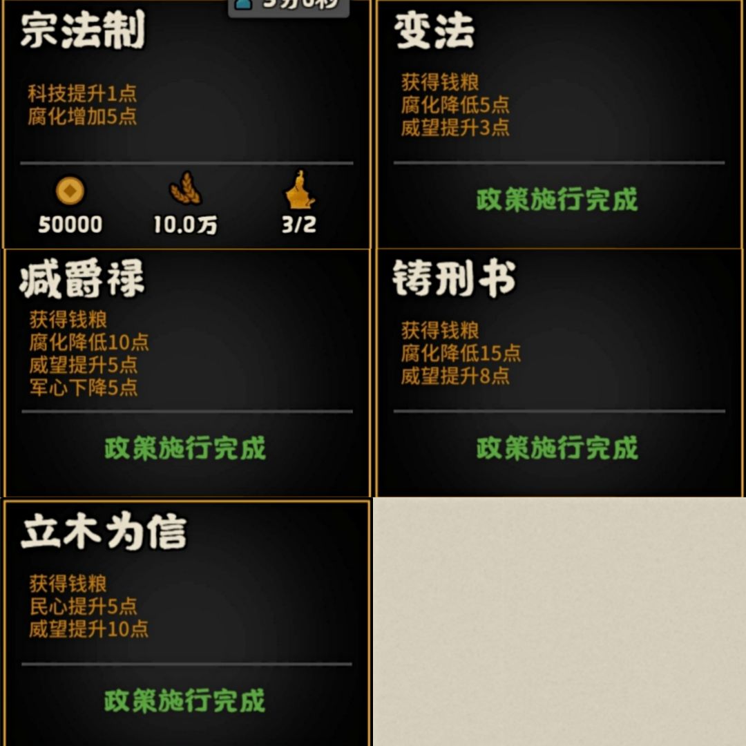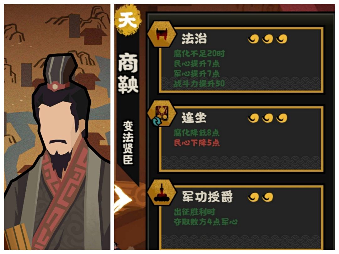 (注意,强推政策也可以降低民心,但是需要大量资源,所以不如商鞅,且商鞅还能降低腐化,变相降低消耗)