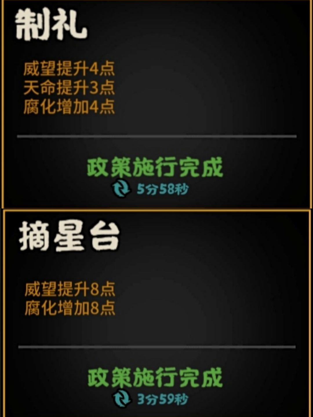 (这里再普及一个小知识:在无悔华夏中某些名臣的技能提供的数值比如降低腐化,提升威望是独立于游戏数值之外的,也就是说无法被减少或者增加,永远固定在一数值,所以就造成了上限降低或者上限提高的现象)