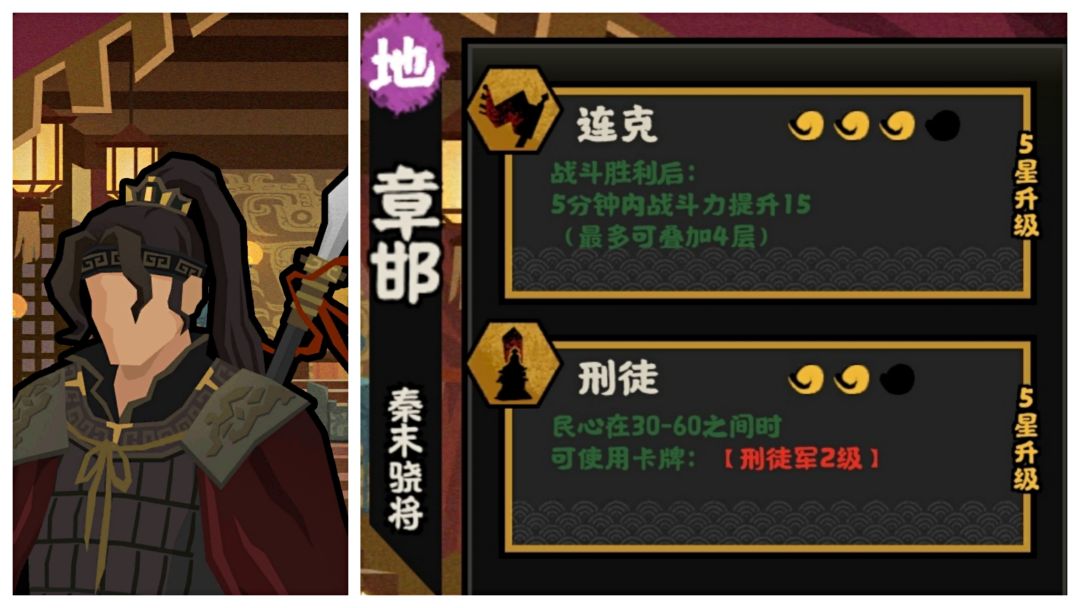 但其效果也是非常好的,提升的7点军心同样永久存在,和刑天增加的30军心加在一起37,刚好踩在只争寸阴军心低于40要求的红线上,提升50战力效果也非常好,腐化低于20的要求可以自给自足。