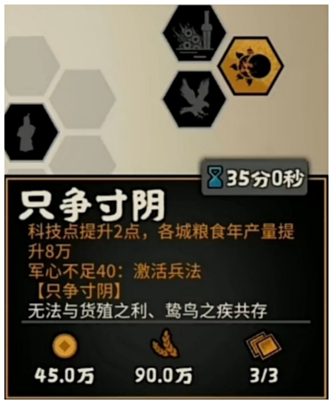 除了只有越国的君主头像以及国家卡牌发生改变,在吴楚越剧本中,加入了三个全新的剧本专属科技: