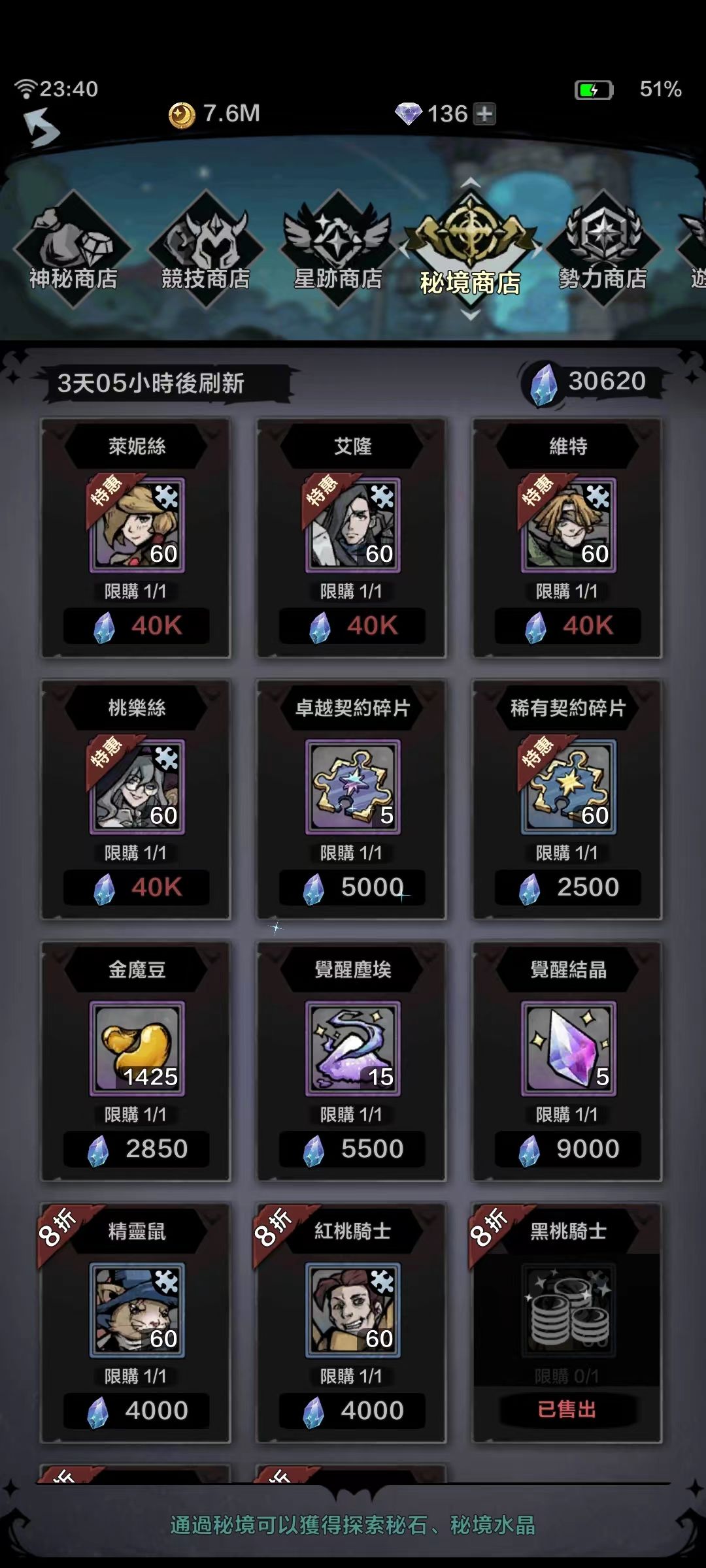 秘境4人组是主要兑换物品,根据自身队伍需要兑换。