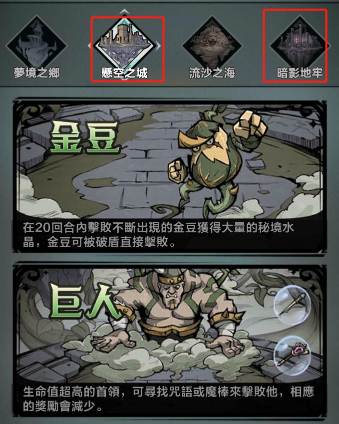 1.只推荐悬空城和暗影地牢。前期无脑悬空城,最多的秘境水晶,快速换英雄,还有金豆子。