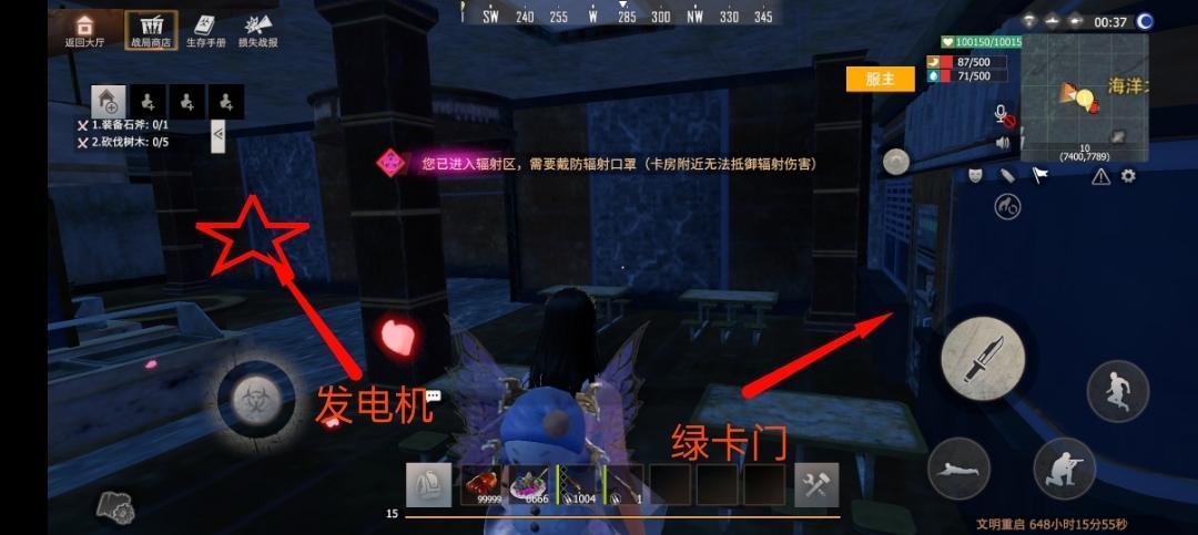 进入到第一层大厅也就来到了绿卡房附近。如图中右侧就是绿卡房,左侧拐角就是发电机。这里蛋崽要提醒一下各位看官。