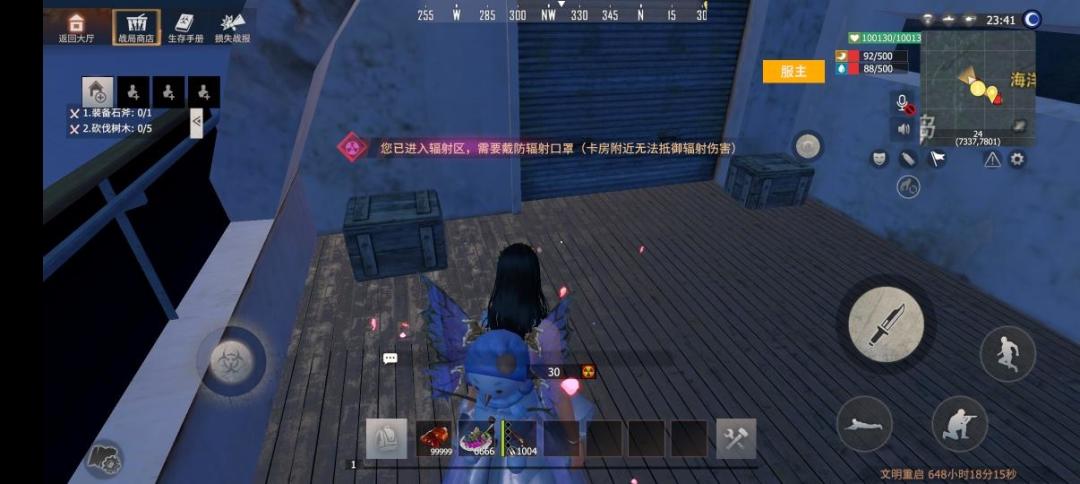海洋之心整体外观类似于游轮。和往常大多数据点,船上是辐射区需要佩戴口罩,这里特别的是进入海洋之心水下卡房还需要穿戴全新上线的潜水装备。据点内以及据点附近水域都会刷新很多怪物。除了陆地上常见的感染者,还有嗜血鲨鱼和海妖。蛋崽这里要特别提醒一下。由于水下枪械存在减伤机制,所以在水下开火时常规枪械伤害很低。所以我们必须要装备好鱼叉枪以及鱼叉,只有这样才能在水下很好的清理怪物