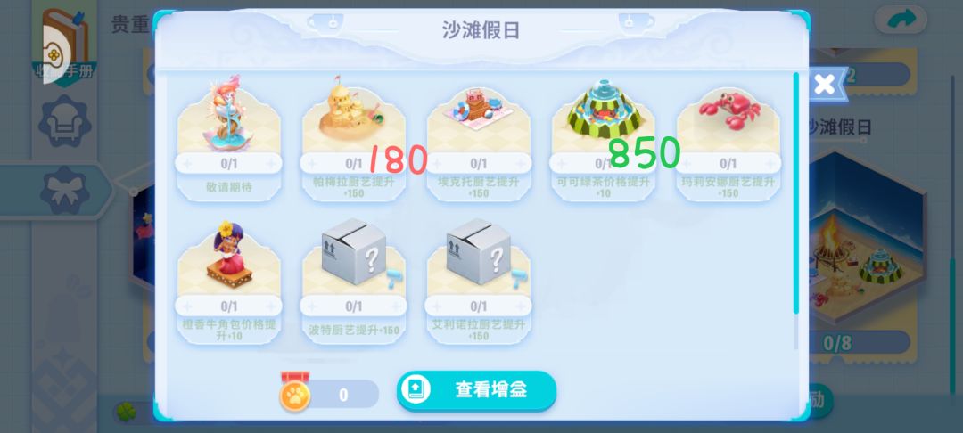📌因为商城可兑换的道具比较多,如果不氪金,浆板道具建议把家具从低往高了换,可以稳定获得厨艺值。