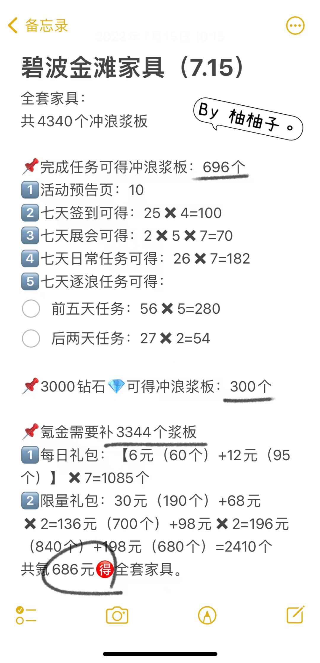 📌兑换攻略:七天任务完成可得996个浆板。可以优先兑换图中标红色数字的家具。