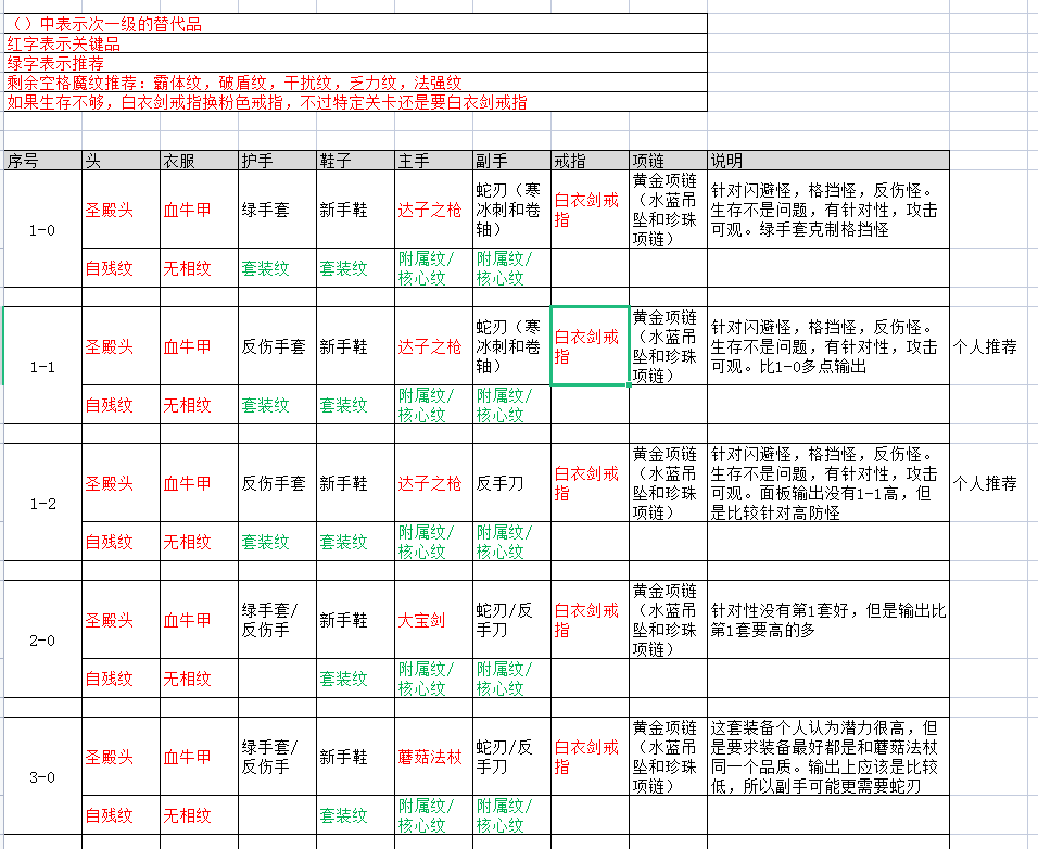 这套装备我没有筹齐,目前卡关暗1586关(怪攻击回血)。这里记录下是给需要的小伙伴一些思路和想法。这套装备过关打2星没有问题,打3星有点问题(因为自残导致的)